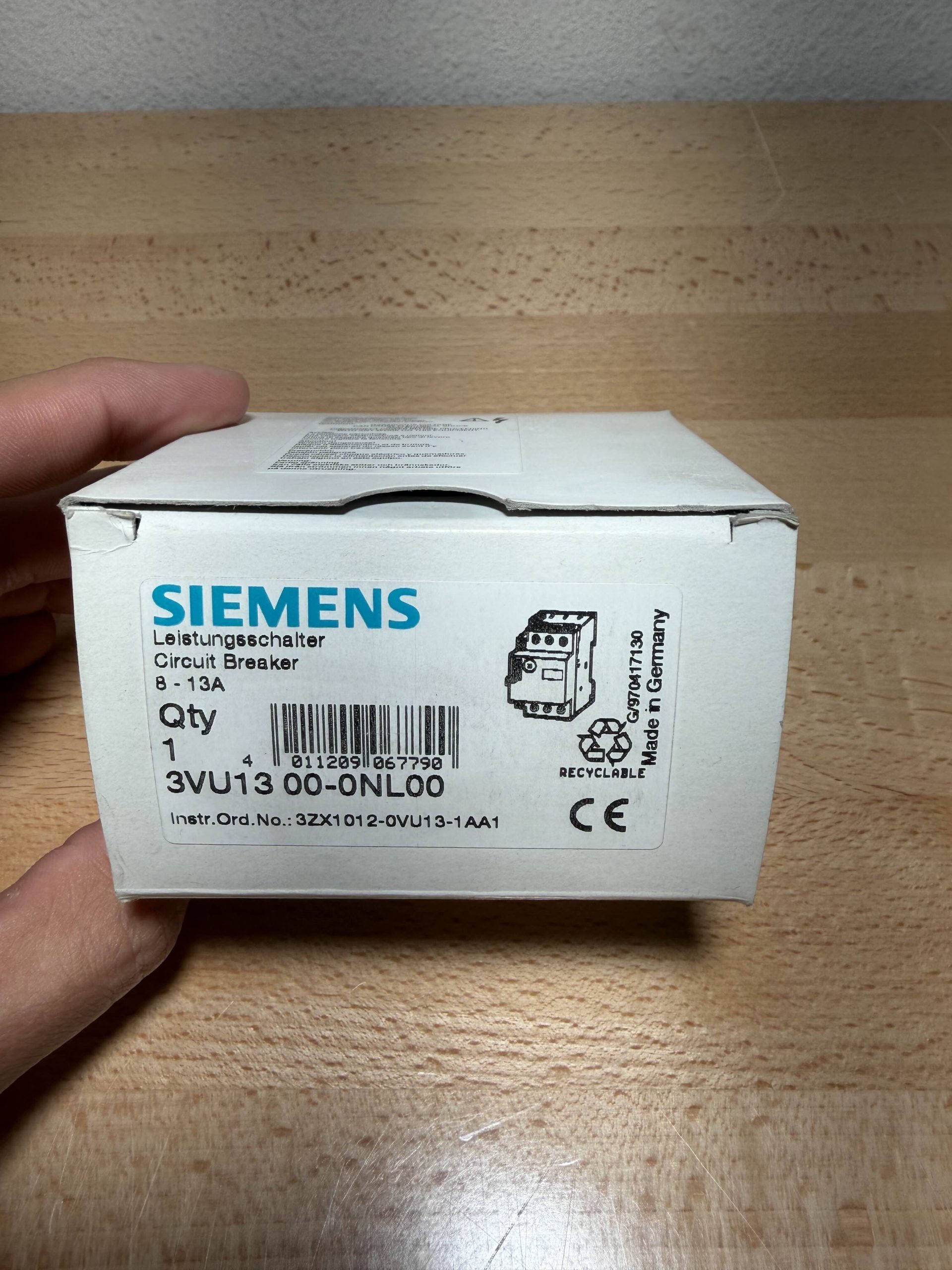 The Siemens 3VU1300-0NL00 is a 3-pole motor starter protector from the 3VU13 series, designed to provide overload, short-circuit, and phase failure protection for electric motors